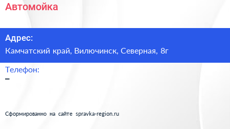 Автомойка по адресу Камчатский край, Вилючинск, Северная, 8г в дальнейшем Организация, размещена в следующих категориях: