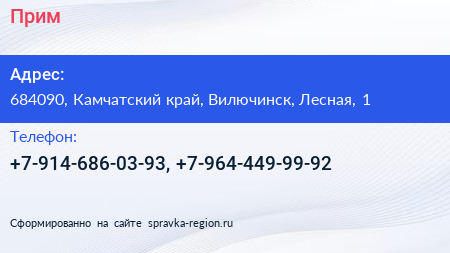 Прим по адресу 684090, Камчатский край, Вилючинск, Лесная, 1 в дальнейшем Организация, размещена в следующих категориях: