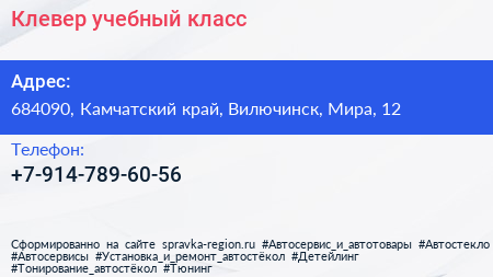 Клевер, учебный класс по адресу 684090, Камчатский край, Вилючинск, Мира, 12 в дальнейшем Организация, размещена в следующих категориях: