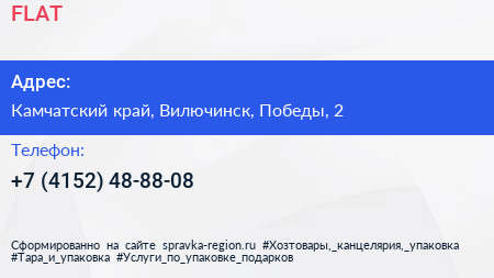 FLAT по адресу Камчатский край, Вилючинск, Победы, 2 в дальнейшем Организация, размещена в следующих категориях: