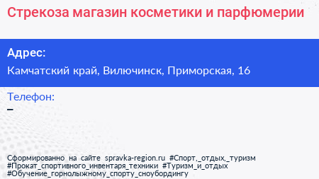 Стрекоза, магазин косметики и парфюмерии по адресу Камчатский край, Вилючинск, Приморская, 16 в дальнейшем Организация, размещена в следующих категориях: