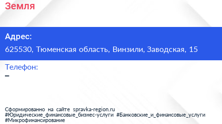 Земля по адресу 625530, Тюменская область, Винзили, Заводская, 15 в дальнейшем Организация, размещена в следующих категориях: