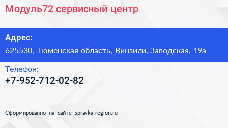 Модуль72, сервисный центр по адресу 625530, Тюменская область, Винзили, Заводская, 19а в дальнейшем Организация, размещена в следующих категориях: