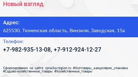 Новый взгляд по адресу 625530, Тюменская область, Винзили, Заводская, 15а в дальнейшем Организация, размещена в следующих категориях: