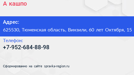 А-кашпо по адресу 625530, Тюменская область, Винзили, 60 лет Октября, 15 в дальнейшем Организация, размещена в следующих категориях: