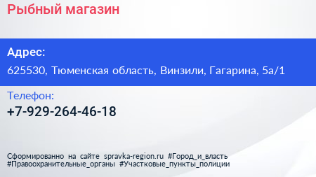 Рыбный, магазин по адресу 625530, Тюменская область, Винзили, Гагарина, 5а/1 в дальнейшем Организация, размещена в следующих категориях: