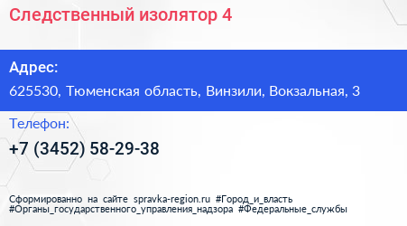 Следственный изолятор №4 по адресу 625530, Тюменская область, Винзили, Вокзальная, 3 в дальнейшем Организация, размещена в следующих категориях: