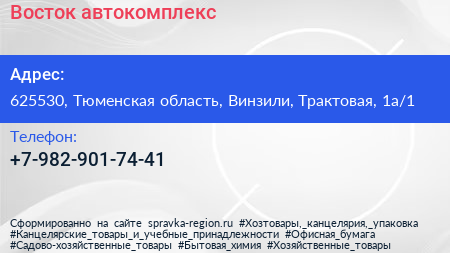 Восток, автокомплекс по адресу 625530, Тюменская область, Винзили, Трактовая, 1а/1 в дальнейшем Организация, размещена в следующих категориях:
