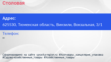 Столовая по адресу 625530, Тюменская область, Винзили, Вокзальная, 3/1 в дальнейшем Организация, размещена в следующих категориях: