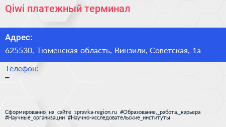 Qiwi, платежный терминал по адресу 625530, Тюменская область, Винзили, Советская, 1а в дальнейшем Организация, размещена в следующих категориях: