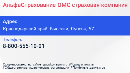 АльфаСтрахование-ОМС, страховая компания по адресу Краснодарский край, Выселки, Лунева, 57 в дальнейшем Организация, размещена в следующих категориях: