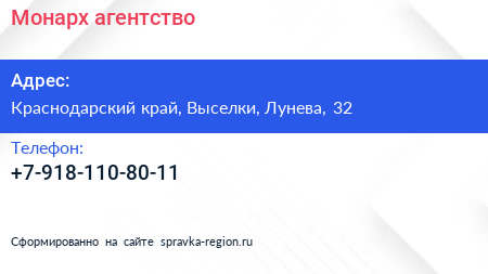 Монарх, агентство по адресу Краснодарский край, Выселки, Лунева, 32 в дальнейшем Организация, размещена в следующих категориях: