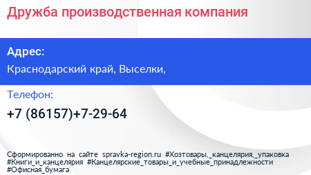 Дружба, производственная компания по адресу Краснодарский край, Выселки, в дальнейшем Организация, размещена в следующих категориях: