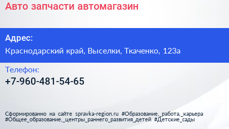 Авто запчасти, автомагазин по адресу Краснодарский край, Выселки, Ткаченко, 123а в дальнейшем Организация, размещена в следующих категориях:
