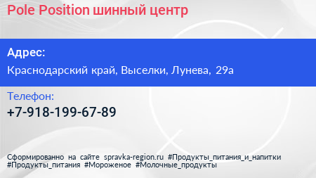 Pole Position, шинный центр по адресу Краснодарский край, Выселки, Лунева, 29а в дальнейшем Организация, размещена в следующих категориях: