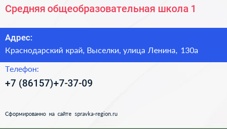 Средняя общеобразовательная школа №1 по адресу Краснодарский край, Выселки, улица Ленина, 130а в дальнейшем Организация, размещена в следующих категориях:
