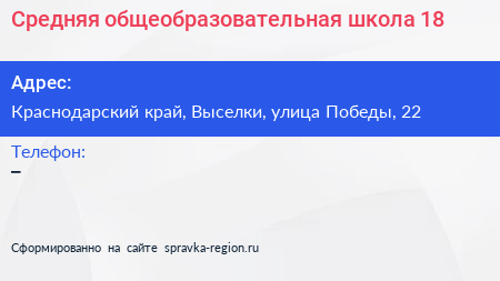 Средняя общеобразовательная школа №18 по адресу Краснодарский край, Выселки, улица Победы, 22 в дальнейшем Организация, размещена в следующих категориях: