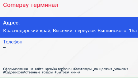 Comepay, терминал по адресу Краснодарский край, Выселки, переулок Вышинского, 16а в дальнейшем Организация, размещена в следующих категориях: