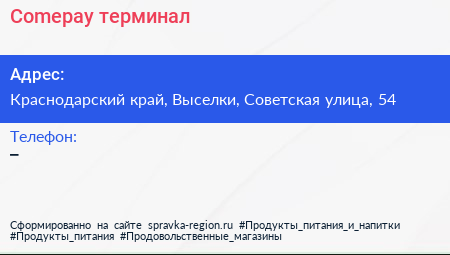 Comepay, терминал по адресу Краснодарский край, Выселки, Советская улица, 54 в дальнейшем Организация, размещена в следующих категориях: