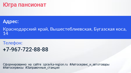 Югра, пансионат по адресу Краснодарский край, Вышестеблиевская, Бугазская коса, 14 в дальнейшем Организация, размещена в следующих категориях: