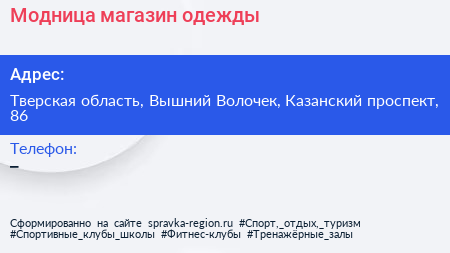 Модница, магазин одежды по адресу Тверская область, Вышний Волочек, Казанский проспект, 86 в дальнейшем Организация, размещена в следующих категориях:
