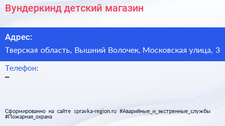 Вундеркинд, детский магазин по адресу Тверская область, Вышний Волочек, Московская улица, 3 в дальнейшем Организация, размещена в следующих категориях: