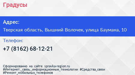 Градусы по адресу Тверская область, Вышний Волочек, улица Баумана, 10 в дальнейшем Организация, размещена в следующих категориях: