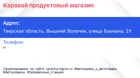 Каравай, продуктовый магазин по адресу Тверская область, Вышний Волочек, улица Баумана, 19 в дальнейшем Организация, размещена в следующих категориях: