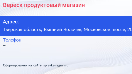 Вереск, продуктовый магазин по адресу Тверская область, Вышний Волочек, Московское шоссе, 20 в дальнейшем Организация, размещена в следующих категориях: