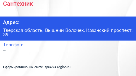 Сантехник по адресу Тверская область, Вышний Волочек, Казанский проспект, 39 в дальнейшем Организация, размещена в следующих категориях:
