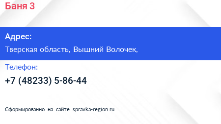 Баня №3 по адресу Тверская область, Вышний Волочек, в дальнейшем Организация, размещена в следующих категориях: