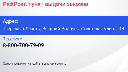 PickPoint, пункт выдачи заказов по адресу Тверская область, Вышний Волочек, Советская улица, 14 в дальнейшем Организация, размещена в следующих категориях: