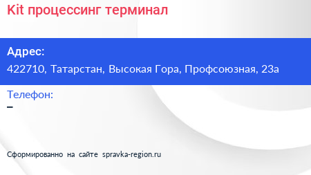 Kit процессинг, терминал по адресу 422710, Татарстан, Высокая Гора, Профсоюзная, 23а в дальнейшем Организация, размещена в следующих категориях: