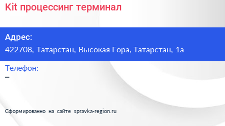 Kit процессинг, терминал по адресу 422708, Татарстан, Высокая Гора, Татарстан, 1а в дальнейшем Организация, размещена в следующих категориях: