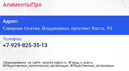 АлиментыПро по адресу Северная Осетия, Владикавказ, проспект Коста, 93 в дальнейшем Организация, размещена в следующих категориях: