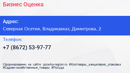Бизнес-Оценка по адресу Северная Осетия, Владикавказ, Димитрова, 2 в дальнейшем Организация, размещена в следующих категориях:
