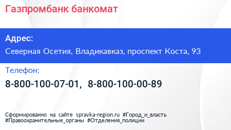 Газпромбанк, банкомат по адресу Северная Осетия, Владикавказ, проспект Коста, 93 в дальнейшем Организация, размещена в следующих категориях: