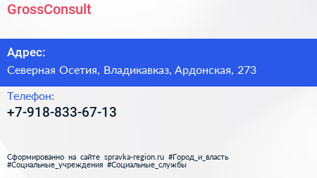 GrossConsult по адресу Северная Осетия, Владикавказ, Ардонская, 273 в дальнейшем Организация, размещена в следующих категориях: