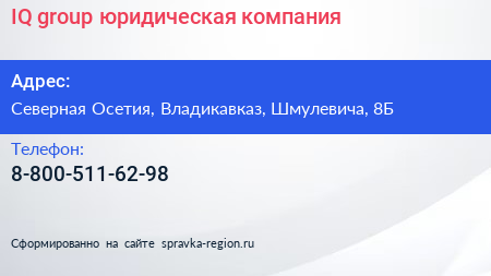 IQ group, юридическая компания по адресу Северная Осетия, Владикавказ, Шмулевича, 8Б в дальнейшем Организация, размещена в следующих категориях: