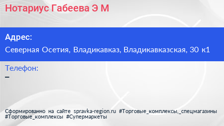 Нотариус Габеева Э.М. по адресу Северная Осетия, Владикавказ, Владикавказская, 30 к1 в дальнейшем Организация, размещена в следующих категориях: