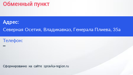 Обменный пункт по адресу Северная Осетия, Владикавказ, Генерала Плиева, 35а в дальнейшем Организация, размещена в следующих категориях: