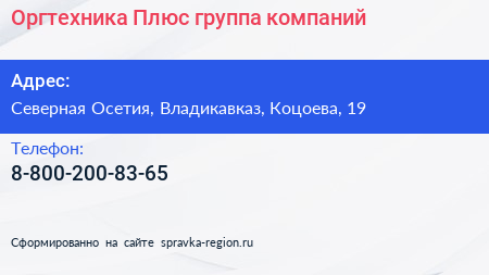 Оргтехника Плюс, группа компаний по адресу Северная Осетия, Владикавказ, Коцоева, 19 в дальнейшем Организация, размещена в следующих категориях: