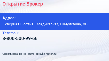 Открытие Брокер по адресу Северная Осетия, Владикавказ, Шмулевича, 8Б в дальнейшем Организация, размещена в следующих категориях: