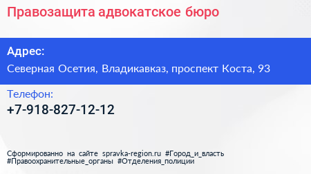 Правозащита, адвокатское бюро по адресу Северная Осетия, Владикавказ, проспект Коста, 93 в дальнейшем Организация, размещена в следующих категориях: