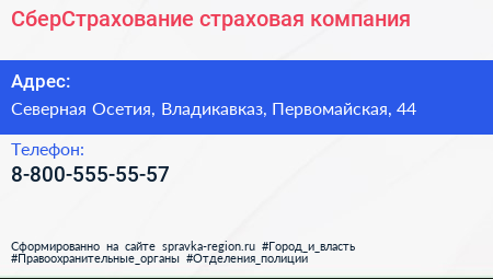 СберСтрахование, страховая компания по адресу Северная Осетия, Владикавказ, Первомайская, 44 в дальнейшем Организация, размещена в следующих категориях: