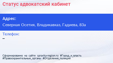Статус, адвокатский кабинет по адресу Северная Осетия, Владикавказ, Гадиева, 83а в дальнейшем Организация, размещена в следующих категориях: