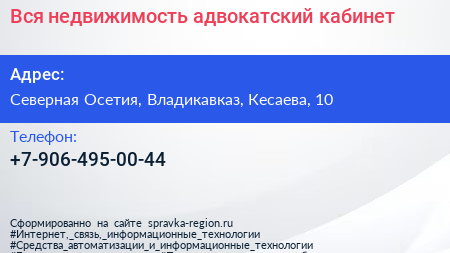 Вся недвижимость, адвокатский кабинет по адресу Северная Осетия, Владикавказ, Кесаева, 10 в дальнейшем Организация, размещена в следующих категориях: