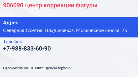 906090, центр коррекции фигуры по адресу Северная Осетия, Владикавказ, Московское шоссе, 75 в дальнейшем Организация, размещена в следующих категориях: