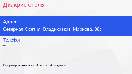 Диакрис, отель по адресу Северная Осетия, Владикавказ, Маркова, 38а в дальнейшем Организация, размещена в следующих категориях: