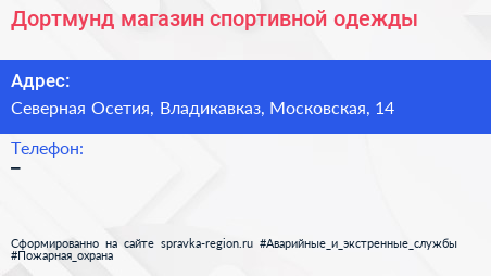 Дортмунд, магазин спортивной одежды по адресу Северная Осетия, Владикавказ, Московская, 14 в дальнейшем Организация, размещена в следующих категориях:
